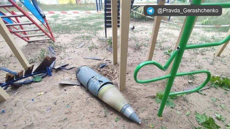 Головная часть российской ракеты на детской площадке в Николаеве. Фото: t.me/Pravda_Gerashchenko
