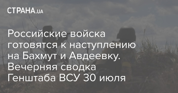 В Генеральном штабе Вооруженных сил Украины опубликовали оперативную сводку с фронта боевых действий по состоянию на 18:00 30 июля, в которой говорится, что российские войска готовятся атаковать Бахмут и Авдеевку.