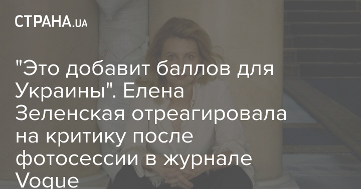 Супруга президента Украины Елена Зеленская прокомментировала критику по поводу совместной с мужем фотосессии для американского журнала моды Vogue и заявила, что "это добавит баллов для Украины на международной арене".