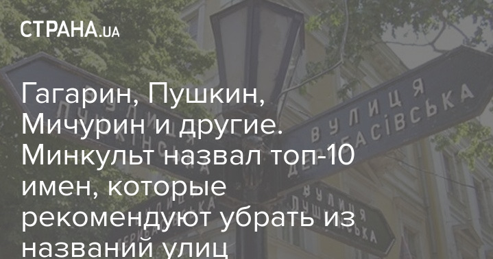 Экспертный совет Министерства культуры и информационной политики Украины по преодолению последствий русификации и тоталитаризма назвал список из 10 наиболее распространенных урбанонимов, которые в первую очередь рекомендуют переименовать.