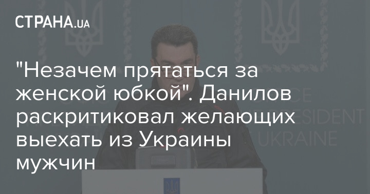 "Может быть альтернатива - пожалуйста, идите, помогайте тем ребятам, которые есть на фронте. Работы в стране очень-очень много. Незачем прятаться за женской юбкой и бежать из страны. Надо помогать. Не можете воевать, не можете брать в руки оружие - помогайте другим способом. Находите возможность помогать. Это несправедливо, когда мужчины начинают бежать из страны во время войны. Я этого не приветствую", - заявил секретарь СНБО.