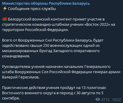 Пока в Украине обсуждают угрозу нападения белорусских войск с севера, подразделения армии Беларуси отправятся на Дальний Восток РФ, где в конце августа-начале сентября примут участие в стратегических учениях РФ "Восток-2022".