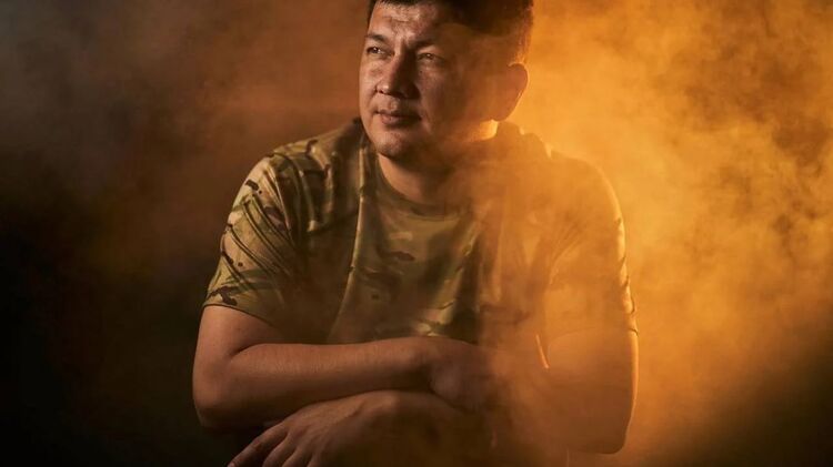 На снимках Виталий Ким позирует в дыму, освещенный оранжевым и синим светом.
