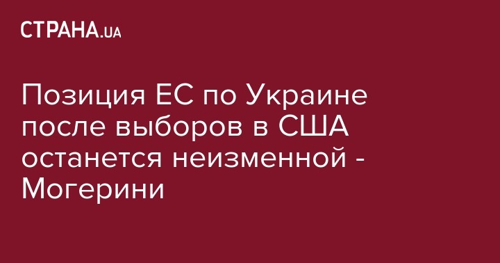 Верховный представитель ЕС по внешней политике и политике безопасности Федерика Могерини заявила, что позиция Евросоюза в отношении Украины и аннексии Крыма не изменится после победы Дональда Трампа на выборах в США. Об этом сообщает Deutsche Welle.