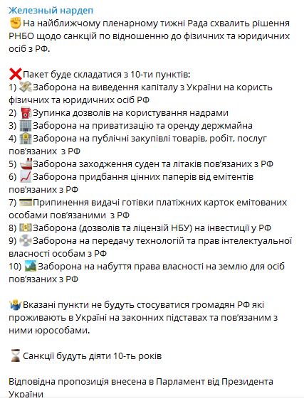 При этом перечисленные пункты не будут касаться граждан России проживающих в Украине на законных основаниях и связанным с ними юрлицами.