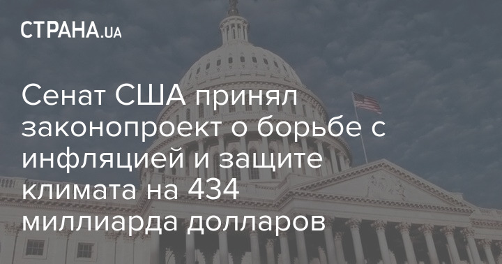 Сенат США принял законопроект о борьбе с инфляцией и защите климата на 434 миллиарда долларов
