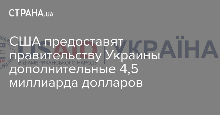 США предоставят правительству Украины дополнительные 4,5 миллиарда долларов