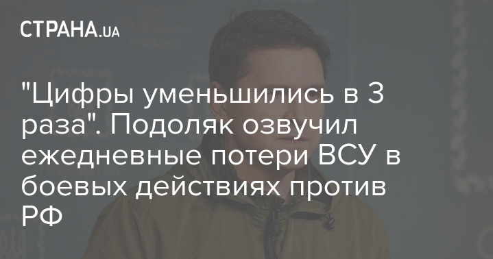 Потери ВСУ в последнее время сильно сократились и составляют примерно 30-50 человек в день. Такие цифры в интервью изданию BBC озвучил советник руководителя Офиса президента Михаил Подоляк.