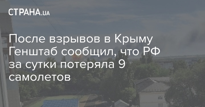 После взрывов на авиабазе в Крыму в утренней сводке Генштаба появилось сообщение о том, что за сутки РФ потеряла 9 самолетов и вертолетов.