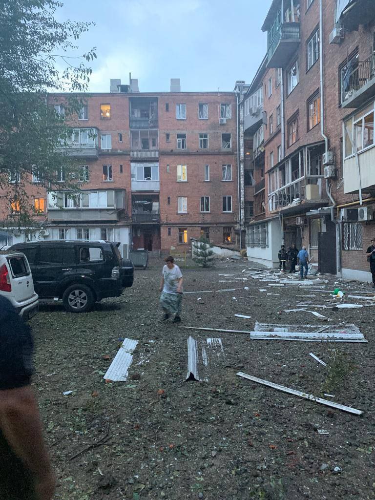 08:45 Результаты ночного прилета во двор жилого дома Киевского района Харькова.