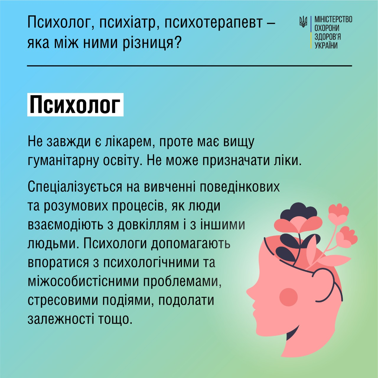 Очень часто люди используют слова "психолог", "психиатр" и "психотерапевт" как синонимы. Между ними есть кое-что общее – каждый из этих специалистов работает с людьми, которые имеют проблемы психического здоровья, или хотят их предупредить или лучше понять себя. Однако между образованием, методами и способами взаимодействия этих специалистов с теми, кто к ним обращается, большая разница.