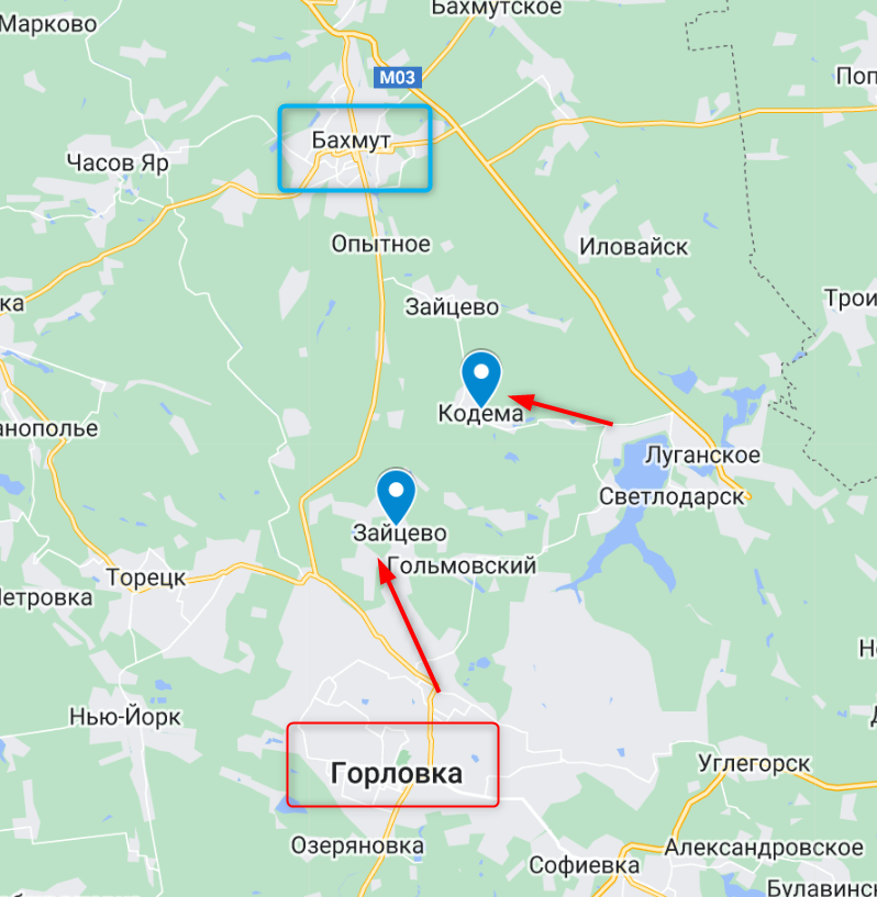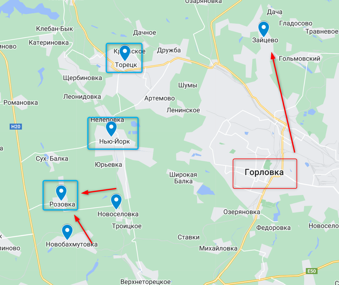 Есть сообщения и о том, что к западу от Горловки россияне начали атаку на Розовку (со стороны Новобахмутовки и Новоселовки). С учетом движения на Зайцево, не исключено, что мы видим попытку охвата Торецка и Нью-Йорка.