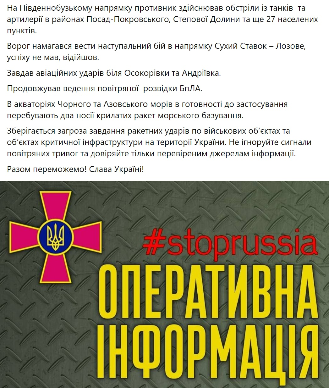 Генштаб Вооруженных сил Украины в своем Facebook опубликовал утреннюю сводку на субботу, 13 августа. Главное из сводки: