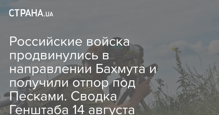 В Генеральном штабе Вооруженных сил Украины опубликовали оперативную сводку с фронта по состоянию на 18:00 14 августа, в которой говорится, что российские войска незначительно продвинулись в сторону Бахмута.