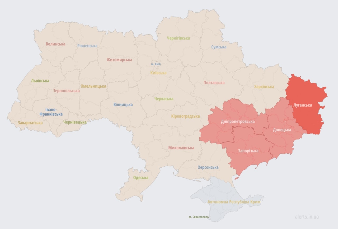 11:33 В Днепропетровской, Запорожской и Донецкой областях звучит сигнал воздушной тревоги.