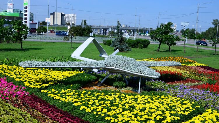 Ко Дню Независимости Украины в Киеве создали цветник, посвященный турецкому беспилотнику "Байрактару".