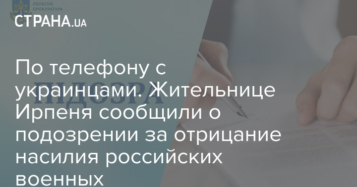 Жительнице Ирпеня (Киевская область) сообщили о подозрении по факту "отрицания военной агрессии РФ" в телефонных разговорах за то, что она отрицала насилие со стороны российских войск в отношении мирного населения.