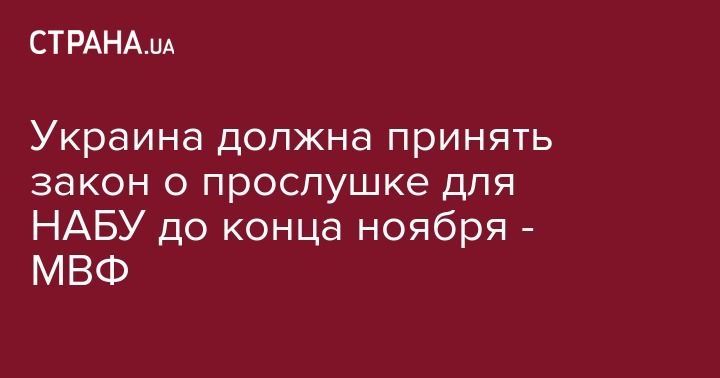 Украина должна принять закон о прослушке для НАБУ до конца ноября - МВФ