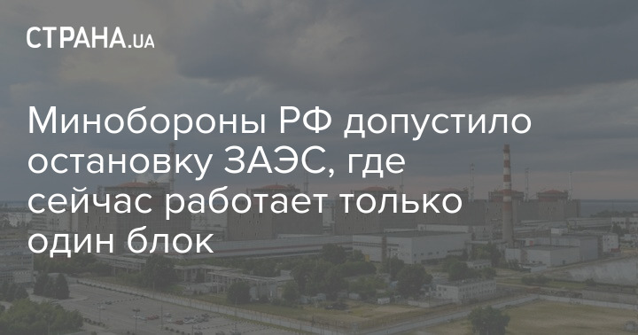 Минобороны РФ допустило остановку ЗАЭС, где сейчас работает только один блок