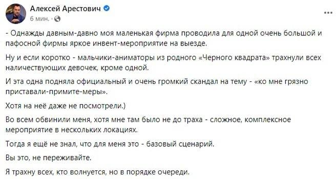 "Я трахну всех, кто волнуется". Арестович написал в фейсбук базовый сценарий своей жизни