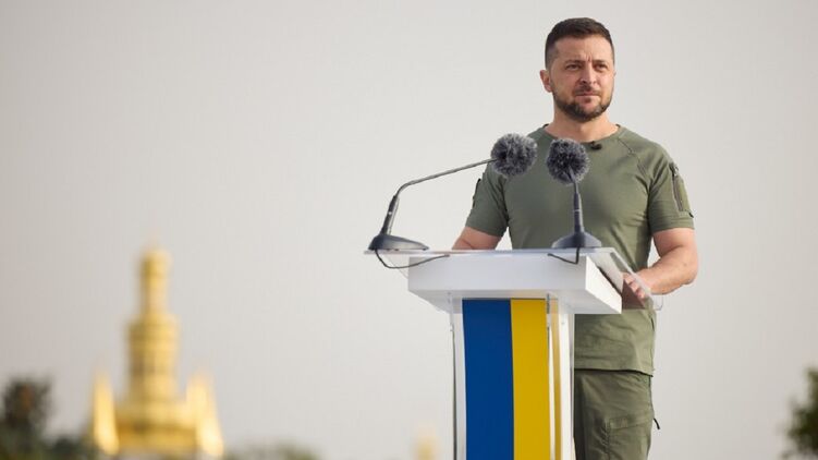 Зеленский заявил, что украинский государственный флаг вернется на временно захваченные территории навсегда и что Украина "никогда не признает чужого цвета на своей земле и в своем небе".