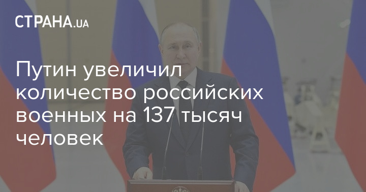 Президент РФ Владимир Путин увеличил число войск на 137 тысяч человек, до 2,03 млн человек в 2023 году, сейчас это количество составляет 1,9 млн человек. Об этом говорится в указе Путина "Об установлении численности вооруженных сил Российской Федерации".