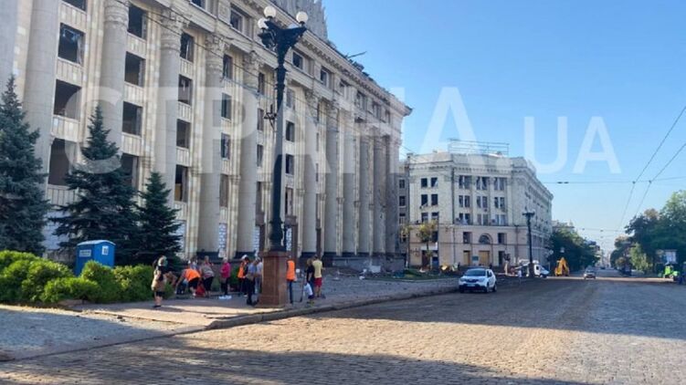 В результате вчерашнего удара по центру Харькова две ракеты приземлились рядом со зданием областной администрации (сзади и спереди).