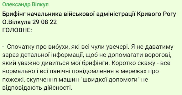 Глава военной администрации Кривого Рога Александр Вилкул прокомментировал информацию о вечерних прилетах в город, косвенно подтвердив их.