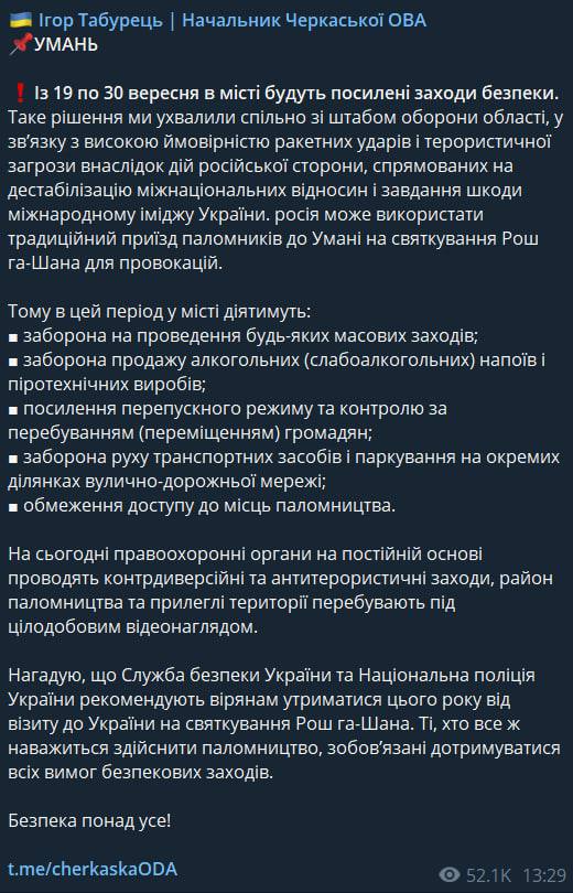 Напомним, что хасидам не стали запрещать праздновать Рош-ха-Шана в Умани, но СБУ рекомендуют этого не делать из-за угрозы провокаций и ракетных ударов.