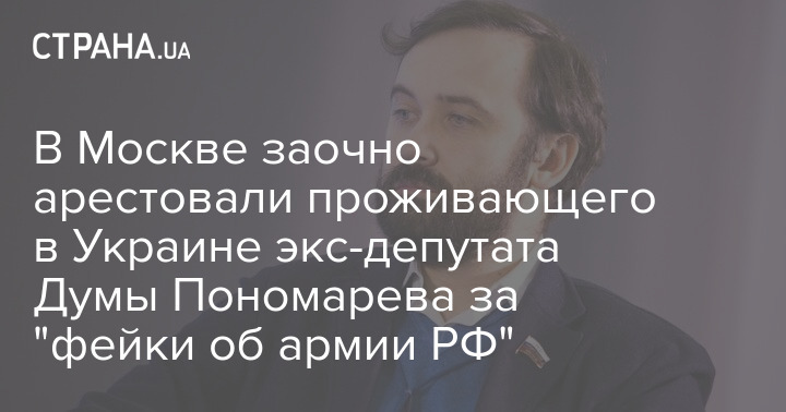 Коптевский районный суд Москвы 30 августа заочно арестовал на два месяца бывшего депутата Госдумы РФ Илью Пономарева, проживающего в Украине. Арест связан с делом о "фейках" о российской армии.