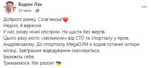 В Славянске в результате обстрела РФ уничтожено СТО и спортзал. Обошлось без пострадавших. Об этом сообщил мэр Вадим Лях.
