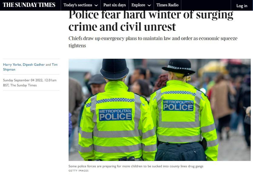 Полиция Британии готовится к всплеску преступности на фоне экономических проблем - The Times