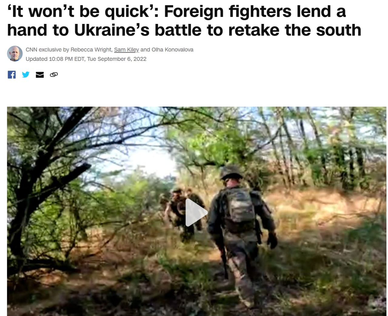 Американский телеканал CNN сообщил о том, как идет наступление ВСУ на юге Украины глазами британского контрактника. Он рассказал, что у россиян большое преимущество в артиллерии и бронетехнике, что делает отвоевание Херсонской области сложным и медленным процессом.