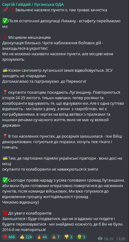 3. Сообщается, что ВСУ освобождают территорию не только в Харьковской, но и в Донецкой областях.