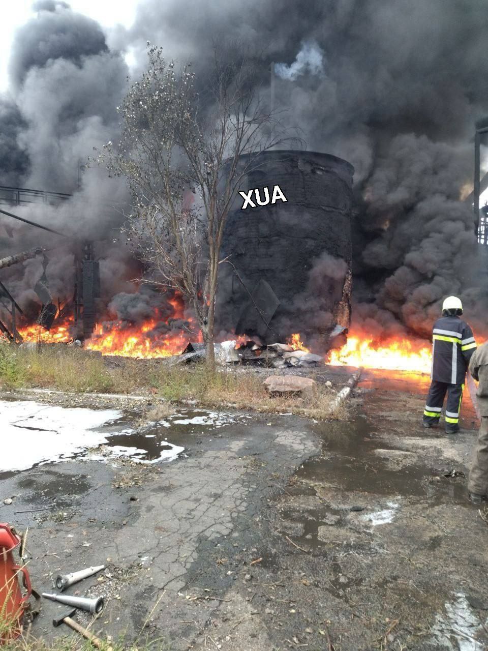 20.37 Пожар в смолоперегонном цехе на Авдеевском коксохимическом заводе после обстрела.