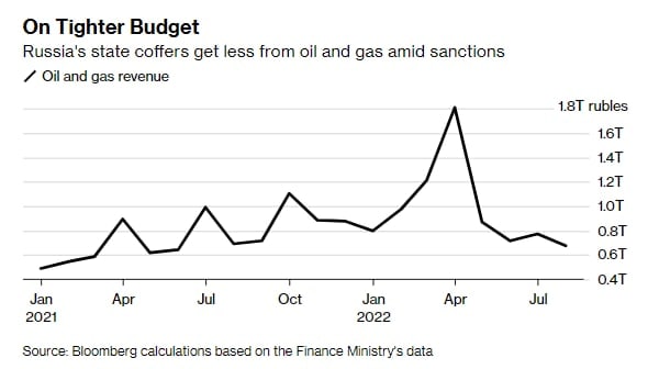 Согласно этим сведениям, поступления в российскую казну от продажи ископаемого топлива, составляющие более трети бюджета страны, в августе сократились до 671,9 млрд рублей (11,1 млрд долларов).