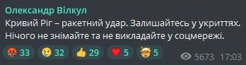 19:43 Глава военной администрации Кривого Рога Александр Вилкул подтвердил удар по инфраструктурному объекту города и заявил, что водоснабжение в Кривом Роге уже восстанавливается.