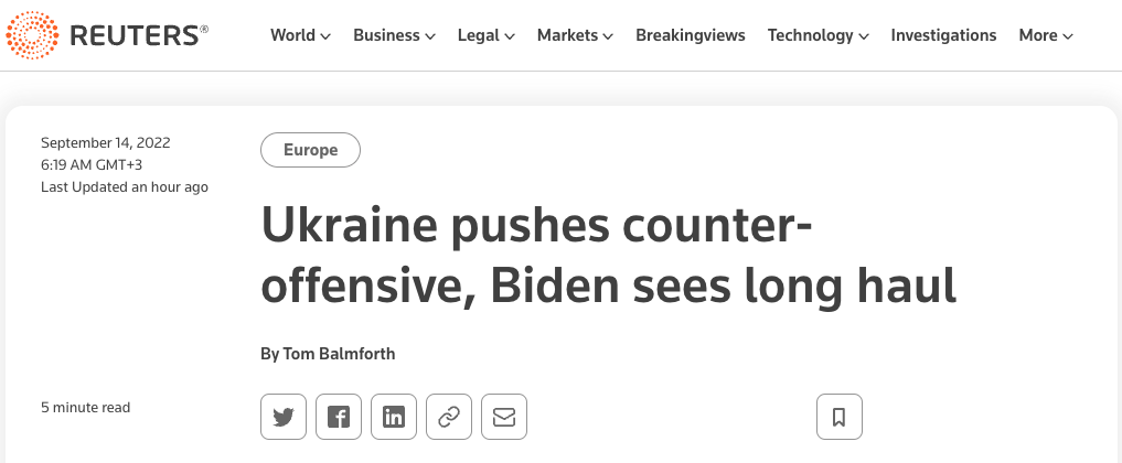 07:29 Президент США Джо Байден, комментируя успешное контрнаступление ВСУ под Харьковом, заявил, что "украинцы добились значительного прогресса", однако "предстоит еще долгий путь".