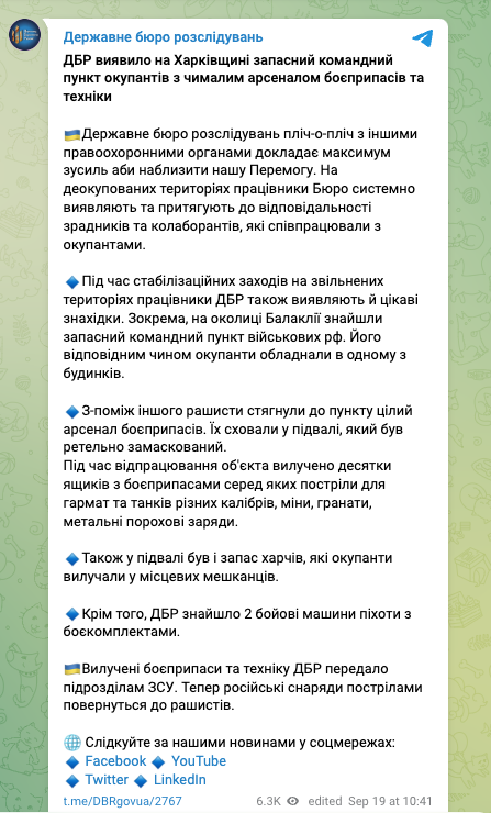На окраине недавно освобожденной Балаклеи Харьковской области в одном из домов нашли запасной командный пункт российской армии с большим количеством боеприпасов и военной техники.