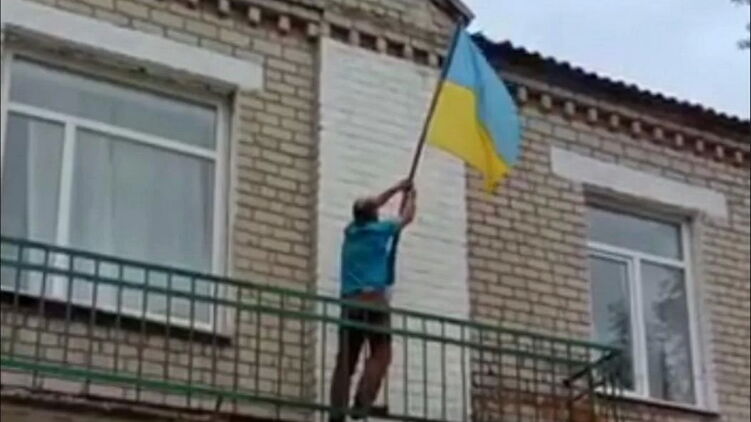 Над селом Подвысокое возле Изюма подняли украинский флаг. Фото: скриншот из видео