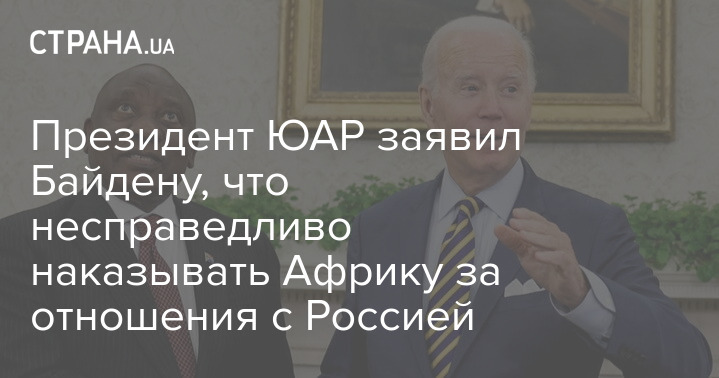 Издание Голос Америки сообщат о том, что президент ЮАР на встрече с президентом США Джо Байденом говорил о несправедливости со стороны США наказывать страны Африки за связи с Россией