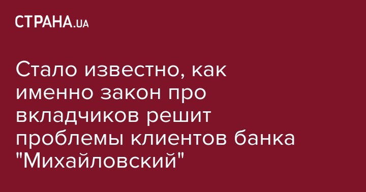 Фонд гарантирования вкладов физических лиц обещает выплатить вкладчикам обанкротившегося банка "Михайловский" 1,2 млрд гривен. Напомним, что Рада во вторник проголосовала за соответствующий законопроект.