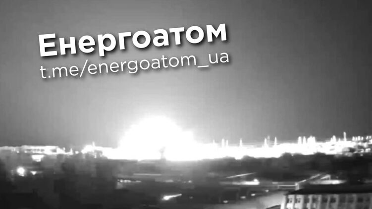 Президент Украины Владимир Зеленский опубликовал видео с моментом прилёта по промышленной зоне Южноукраинской АЭС.
