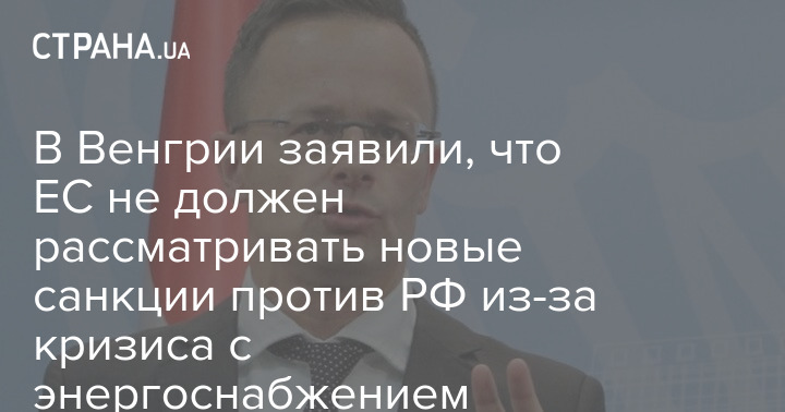 Министр иностранных дел Венгрии Петер Сийярто заявил, что Европейский Союз не должен рассматривать новые санкции против России, поскольку это якобы только усилит кризис в энергетике и нанесет вред Европе.