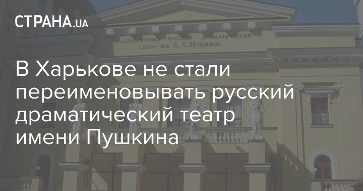 В Харькове не стали переименовывать русский драматический театр имени Пушкина