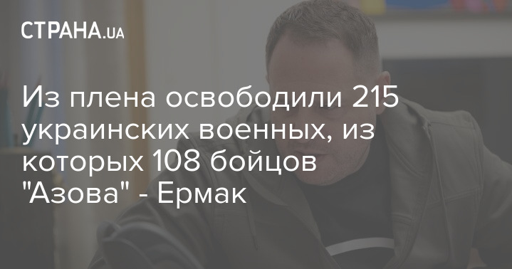 215 украинских военных освободили 21 сентября из российского плена, сообщил глава Офиса президента Андрей Ермак. Из них 108 бойцов "Азова".