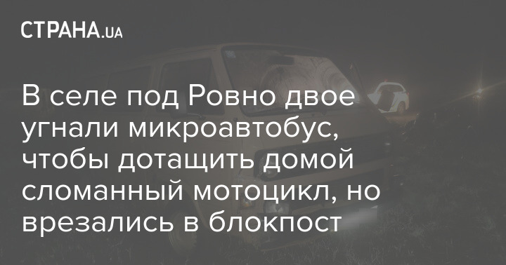 В селе под Ровно двое угнали микроавтобус, чтобы дотащить домой сломанный мотоцикл, но врезались в блокпост