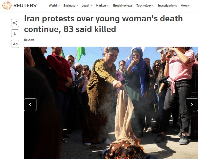 Мы писали, что в Иране разгораются протесты после смерти задержанной за неправильно надетый хиджаб девушки. Есть погибшие.