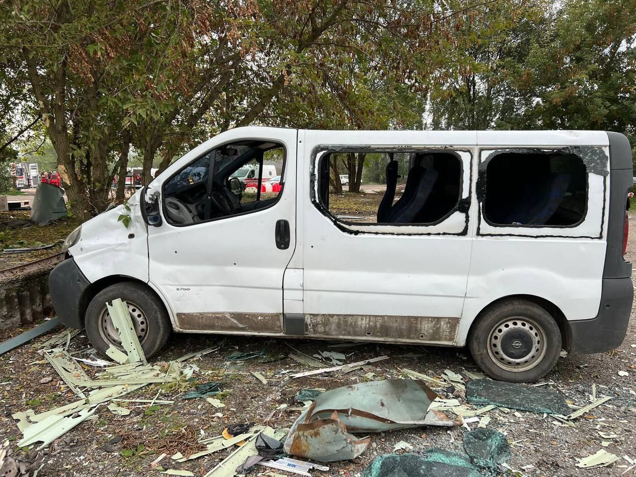 На месте ударов на асфальте образовались воронки, разбиты легковые авто и микроавтобусы.