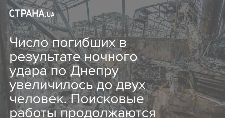 Сегодня, 30 сентября, спасатели обнаружили тело второго погибшего под завалами на транспортном предприятии в Днепре. Там идет поисковая операция после ночного удара российского комплекса "Искандер". Об этом сообщил глава Днепропетровской ОВА Валентин Резниченко в своем телеграм-канале.